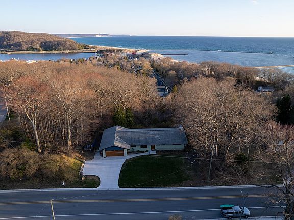 Indulge in the luxury of over 3,400 square feet of meticulously renovated living space in the picturesque town of Frankfort, Michigan. This exquisitely designed home boasts four bedrooms, three bathrooms, two full kitchens, two convenient laundry rooms, and a spacious 2-stall garage. Unleash your imagination with the endless possibilities this home presents. Every inch has been thoughtfully crafted, utilizing top-tier materials to ensure a high standard of quality throughout. The attention to detail is evident in every corner, creating a harmonious blend of functionality and aesthetics. Step onto the back deck and be captivated by seasonal views of majestic Lake Michigan. Picture-perfect moments await, and with the removal of a few trees, the panoramic views could be seen for more of the year and provide even more breathtaking views. Convenience meets charm as this residence is ideally situated within walking distance to both downtown Frankfort and the serene shores of Lake Michigan. Experience the epitome of refined living in this thoughtfully designed home that seamlessly combines modern elegance with the tranquility of its natural surroundings.
