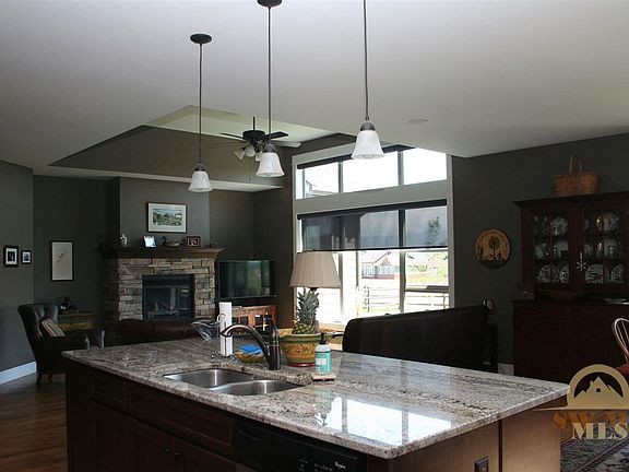 This beautiful home built by Alpenglow features a spacious well designed single level floor plan. Upgrades throughout include hardwood floors through most of the home and upgraded bathroom and kitchen finishes and a central sound system. Home backs to open space, with spectacular Bridger Mountain views, which is easily enjoyed from the cozy covered patio and fenced back yard. Spacious master bedroom is light and bright and separate from other bedrooms. Large master suite with oversized walk in closet.