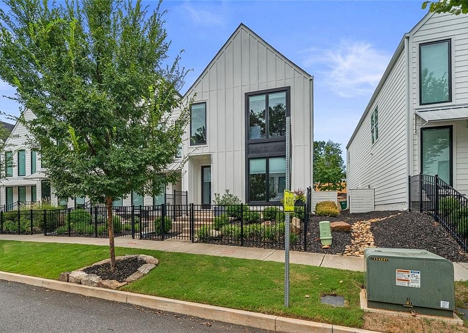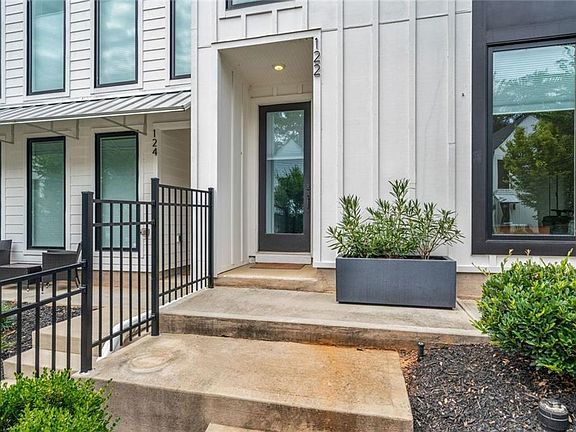 Walk or ride your golf cart to Downtown Woodstock!! Luxury townhome with all the conveniences is one of Georgia’s most desirable places to live. Meticulous, nearly new luxury townhome offers designer upgrades throughout. The foyer entry is large and welcoming accessible from the front door or the garage. Extra-large windows throughout complete with adjustable shades, allowing so much natural light, massive, vaulted ceilings, remote controlled ceiling fans, to the open concept living area with custom features including a contemporary electric fireplace, luxury flooring, accent walls. Your upgraded kitchen includes painted cabinets, stainless appliances, a huge island for entertaining, food prep, extra seating, walk in pantry and so much more. The entry level features a full bedroom with a full bath, custom tiles, and large closet – could be your work from home office, guest suite, den, media room – your choice. The primary suite features three (3) closets and covered back porch access (furniture included) and a spa like bath with oversized upgraded tiled shower and dual sink vanity. The professionally landscaped, gated front yard allows you that maintenance free lifestyle. Ride your golf cart or walk to the community amenities including a pavilion with grills, firepit and a dog park. Just a few minutes more and you are in Downtown Woodstock for dining, shopping, entertainment and the amphitheater. Costco, premium outlets, the farmers market, parks and trails just moments away!