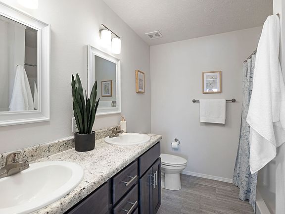 This newly built 3 bedroom floor plan is the definition of maximized space. Enter from the front porch or the 2-car garage and be immediately welcomed into the living room with an open view through to the dining and kitchen areas for family meals and meaningful evenings together. Natural sunlight from the sliding glass doors, leading to the back patio, makes the kitchen's large island the perfect spot for preparing delicious family recipes while grabbing your recent grocery trip items from your walk-in pantry. Retreat to your thoughtfully designed master bedroom, featuring an en suite bathroom and walk-in closet. Two additional bedrooms provide room to grow, work and play with their own spacious closets. We require a minimum combined average 600 credit score and a combined income equal to 3 times the monthly rent.