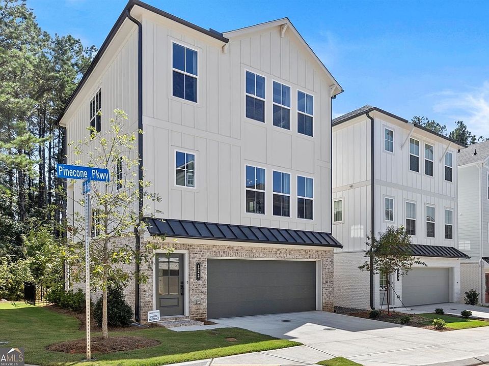 Experience modern luxury and everyday comfort in this beautiful three-story home in the new Pinecone development by Empire Communities. Situated on a corner lot, the home enjoys abundant natural light throughout, along with a private backyard, covered deck, and a two-car garage. Every detail has been thoughtfully selected with over $63,000 in premium upgrades, including box beams and a barn door in the owner's suite, shiplap ceilings, luxury cabinetry, quartz countertops, premium appliances, designer lighting, and wide-plank luxury vinyl flooring throughout. Each element has been designed to blend elegance, comfort, and practicality, making this home truly remarkable. Pinecone park is more than a neighborhood - it's a lifestyle. Residents enjoy a sparkling community pool, welcoming clubhouse, community garden, and a direct trail to Rock Mill Park and the Greenway, perfect for morning walks, evening jogs, or weekend adventures. Centrally located at the intersection of Kimball Bridge and North Point Pkwy, you're just minutes from shopping, dining and entertainment, all while enjoying the privacy and serenity of this thoughtfully designed community. This home is not just a place to live - it's a place to thrive, create memories, and experience the best of Alpharetta living.