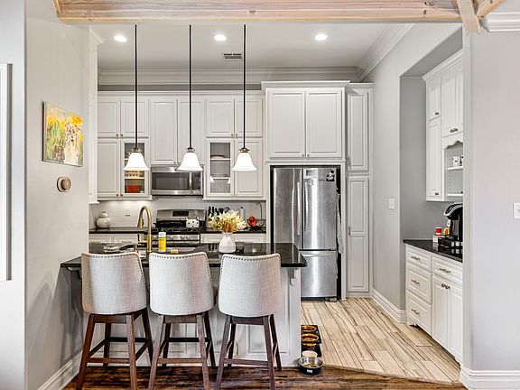 Beautiful home in the highly sought-after Sterlington School District! Step into the living room featuring stunning white-stained natural wood ceilings, a cozy fireplace with built-ins, and an adjoining designated dining area filled with natural light. Just off the dining area is a spacious den with abundant windows, a brick fireplace, and access to the covered back porch overlooking the fenced backyard. The open kitchen offers granite countertops throughout, a coffee bar, overextended counter for bar seating, double sink, and plenty of cabinet space. The primary suite boasts vaulted ceilings, a striking wallpaper accent wall, large windows, and an en suite bath with two walk-in closets, an oversized tiled shower, double sinks with granite countertops, and tile flooring. The second bedroom is generously sized with double-door closets, and the second bath features granite counters, gold accents, and a tub/shower combo. Additional features include a laundry room with closet and built-ins, a two-car garage with stair access to attic storage, and a prime location near shopping, dining, and entertainment. This is truly a beautiful home in a beautiful neighborhood!