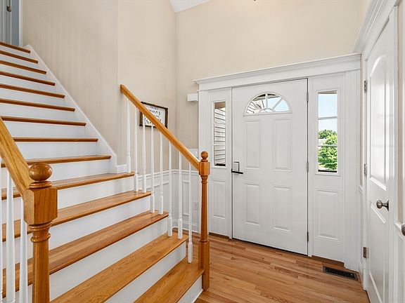 Welcome to this bright and spacious townhouse! Enjoy a low maintenance lifestyle! As you enter the front door you are greeted by a wide open foyer with soaring ceilings, sun drenched windows and glistening hardwood floors. The kitchen features lots of cabinet space, granite counters, breakfast bar and stainless appliances. Dine in style as you watch wildlife from your dining room picture window. Relax or entertain in the open concept family room with a cozy gas fireplace and slider to your personal deck.The first floor also boasts a half bath with laundry. Upstairs you'll find 2 spacious bedrooms with wall to wall carpet, customized closets & plantation shutters. The primary with private bath also has 2 closets including a walk-in. The spacious 2nd floor full bath is complete with linen closet. Unfinished basement is waiting for your creative ideas! Epoxy floor in 2 car garage keeps it looking fresh. Stay cool with a BRAND NEW central air condenser! Showings begin immediately.