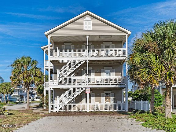 Location, Location, Location! Motivated Sellers! Tour today! 122 Quinton St. is right in the heart of Holden Beach! This 3 bed 2.5 bath home is a block from island resturaunts, ice cream shops, and a short walk to Bridgeview Park with playgrounds, splash pad, and more! Take in the views of both the Intracoastal Waterway, and the Atlantic Ocean from one of 6 balconeys. This reverse floorplan features a large open living area and dining space. Recent improvements include removing all popcorn ceilings and paint wall to wall. In the kitchen you will find new counters, and tile backsplash. The butlers lift makes getting heavy items upstairs a breeze. The second level has all three bedrooms that each have exterior doors to a balconey. Recently added pocket doors on the interior to provide more space to relax and unwind. The ground level has a two car garage, plenty of storage space, and a very large owners closet that could easily be made into a home office or flex room. An outdoor shower after sandy or salty days, and a nice paver patio to simply hang by the grill. In addition to the two car garage, this corner lot has room for up to 6 additional cars to park off the street, or park your boat when not in the water. The community boat ramp is also only a block away, and the beach is only a 5 minute walk. This home is being offered mostly furnished and is waiting for you to visit now, and all year long!