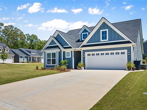 What a spectacular move-in ready home! This less than two year old upgraded property has an open floor plan and offers generous utility featuring four bedrooms and three full bathrooms! Known and desired by many, this Martin's Trail favorite "Sawyer" floor plan offers versatility with three bedrooms and two bathrooms on the main level as well as a large 16x15 junior suite upstairs. Immediately inside, you will be greeted by the engineered hardwood flooring that begins in the foyer and continues into the main living areas to even extend into all the bedrooms downstairs! The kitchen is open to the large living room which has a gas fireplace with refreshed surround and seamlessly built-in matching bookcases creating a custom appeal. The kitchen has white 42" Shaker-style cabinets, an island with a deep double bucket sink, colonial white granite countertops, a large walk-in pantry and stainless steel appliances to include: electric stove/oven range, built-in microwave, dishwasher, and garbage disposal. Enjoy the main bedroom suite with a large walk-in closet, trey ceiling and full en-suite bathroom which features white shaker style cabinets, double sinks, rectangular sinks with cultured marble countertops, ceramic tiled shower with frameless glass enclosure, linen closet and ceramic tiled floor. This home has generous features such as 2" blinds throughout, elongated toilets, crown molding and 9' ceilings downstairs, five panel interior doors, "two-over-two" windows, transom windows and glass door to the covered back porch with a seamless retractable screen! Enjoy the professionally upgraded landscape with additions from crepe myrtle trees to beds full of hydrangeas, azaleas and so much more! With privacy in mind, this premier corner lot left no detail forgotten when planning for a future green buffer! This fully sodded and irrigated yard comes to you with a black aluminum perimeter fence equipped with two gates and integrated locks. The two car attached garage has a utility sink, shelves and hooks for gardening tools. Neighborhood perks include sidewalks, street lights and a covered pavilion green space. Located just off of Harriett Circle near the East/West Parkway nearby grocery shopping, AnMed, the YMCA, and the recently extended walking path connecting to the entrance of this esteemed neighborhood. Zoned for the Midway, Glenview and Hanna schools.