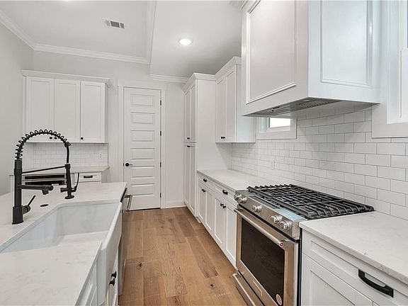 Gas log fireplaceGenerous islandStainless steel appliancesWalk-in pantryExpansive walk-in closetLarge tiled showerFreestanding tub