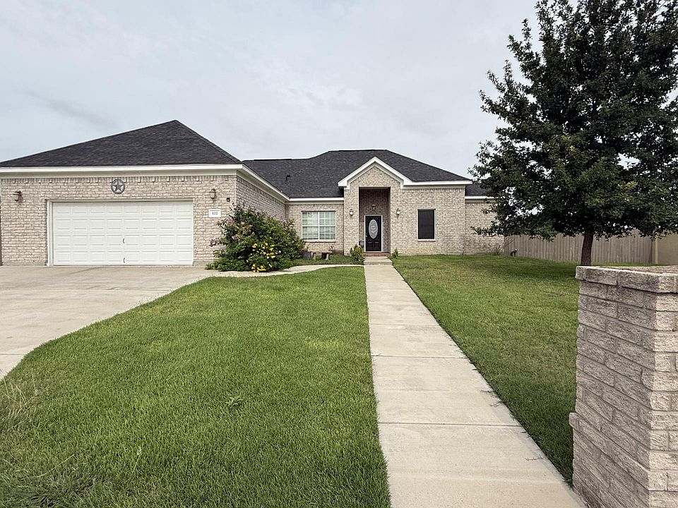Welcome to 122 Running Bear—a spacious 4-bedroom, 2-bath brick home perfect for comfortable family living. Step outside to enjoy a beautifully landscaped front and backyard, complete with an above-ground pool, swing set, and a storage shed for all your outdoor needs. Inside, the home features a large kitchen ideal for cooking and entertaining, and tile flooring runs throughout for easy maintenance and a clean, cohesive look. The split floor plan offers privacy, with the primary suite boasting a double vanity, walk-in shower, and relaxing jacuzzi tub. Whether you're hosting friends or enjoying a quiet night at home, this property has everything you need. Don't miss out on this well-maintained and move-in-ready home!