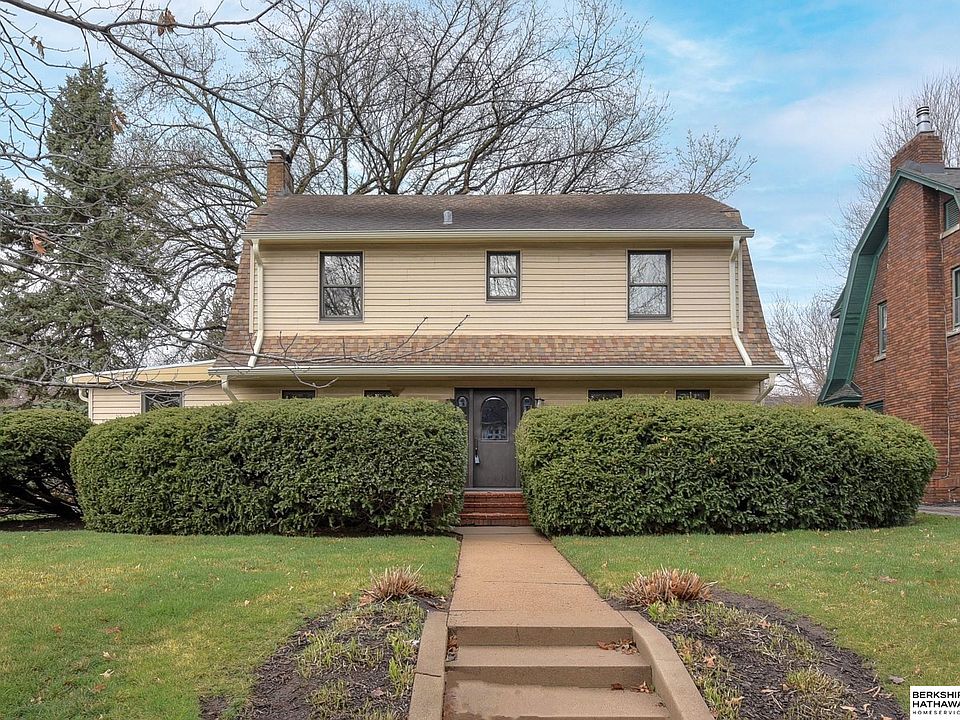 Open Sun - You will fall in love with this classic 2-story located in historic Dundee. This home offers a well-designed layout with a spacious living room, formal dining room plus a main floor family room. Four true bedrooms, tons of windows, and two full baths on the 2nd floor plus an additional guest bath on the main floor. Charming entry, beautiful hardwood floors, woodburning fireplace, built-in bookshelves, and old-world architectural details throughout. Upgrades include a newer roof with a leaf guard system, central air conditioning, front door, vinyl siding, and windows. Approx. The basement's 1,000 additional unfinished square feet with taller ceilings provide a blank canvas for expansion. This home sits on a large corner lot showcasing a beautiful fenced backyard, sprinkler system, and a 2-car garage with a 4-car driveway. Tremendous location, within walking distance to UNO, UNMC, Blackstone, and Dundee's commercial districts, pharmacy, shops, theater, and restaurants.