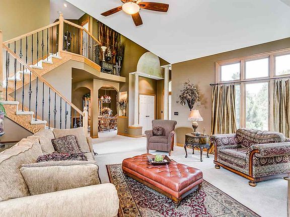 Gorgeous and inviting, this spacious home is truly impressive with custom features, upgrades and so many extras! The foyer includes a barrel ceiling, tile floor, large entry closet and welcomes you to the absolutely spectacular living room area. The living room features huge vaulted ceilings, beautiful fireplace, and wonderful large windows and transoms that provide great natural light. The living room is open to the stunning staircase with updated iron balusters which leads to the upper level. The formal dining room provides great space for all of your dining furniture with large triple windows and transoms and fabulous decor including two lighted niches nearby. The main floor also includes a half-bathroom, and a very open and spacious kitchen, informal dining and hearth room area. The kitchen is amazing - with a stunning blend of rich colors, beautiful hardwood floors, so many cabinets and gorgeous granite countertops, custom backsplash, island with eating bar, pantry, and bayed informal dining area. This open area has living space in the hearth room with a gas fireplace including updated custom tile accents, great windows overlooking the backyard, and opens to the 20'x13' backyard deck and adjacent patio area, providing the perfect layout for grilling and entertaining. The upper level features a stunning owner's suite with double door entry to the bedroom, great bayed window area for seating and a stylish double-trayed ceiling with indirect lighting. The well-designed master bathroom includes a whirlpool tub with large widow over the tub area, oversized shower, large vanity with double sinks and an unreal master closet - so much space and even a built-in vanity and shelving area in the closet! The upper level includes two additional bedrooms and another bathroom with chic diagonal tile flooring, tub/shower, large vanity, and nearby linen closet. The basement continues the feeling of great family spaces with a large family room including another gas fireplace, great media space, recessed lighting and large open recreation/game area with a wet bar and walkout leading up to the backyard area and deck. The basement also includes a full bathroom with tub/shower and a large vanity, and a huge bedroom that could be multifunctional with so much space - workout area, office, playroom, etc. This home has a captivating charm and elegance and yet makes you immediately feel right at home! From perfect family times to enjoyable entertainment evenings with friends, this home has it all!