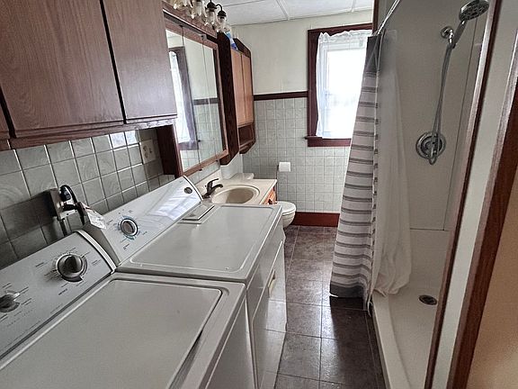 The convenience of a main floor laundry is offered with a full size Whirlpool washer and dryer located within the full bath.