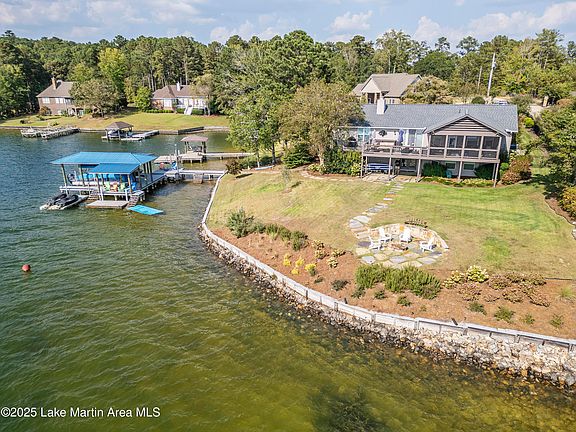 They call it ''Big Water,'' and this dame lives up to her name! Gated opulence meets a stargazer's dream -- from a huge Milky Way-kissed sky to the nautical intersection of Madwind Creek, Dennis Creek & the north/south channel of Lake Martin -- you'll never run out of things to see & do here! Two floors of beautifully-appointed space. Current sellers have slept 25 at a time in this jewel. A sprawling set up with a covered boathouse, built-in Firepit, blooming landscape, & 227'+/- of pristine shoreline. Current owners gradually gave this home a fresh new face & repurposed space perfect for lake life (massive screened porch, gym & oh-so-smart lake toy room. Bedrooms are spacious, bonus rooms on both floors...perfect for home office, hobby space or bunk/extra space. So special. C'mon home!