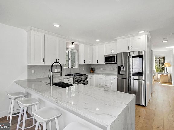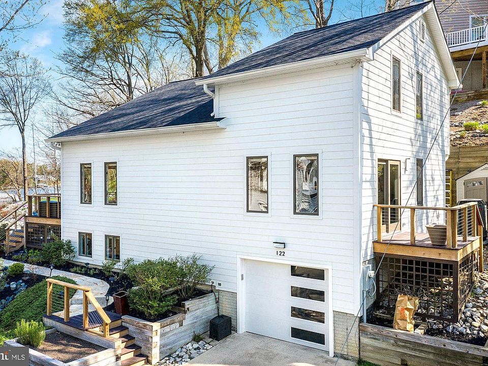 Picturesque and sublime describe this waterfront oasis. Views from nearly every room of the verdant landscape, nature's wild, and calming waters make for the most peaceful retreat you can imagine. Thoughtfully redesigned from top to bottom, this contemporary home is styled and detailed with a neutral palate sure to please the most discerning buyer. The flow of the open concept design maximize the water views with large sliders and windows that flood the house with natural lighting. Entertain from the center hub, the artfully composed kitchen, with plenty of counter space, seating area, stainless appliances, and clean-lined shaker style cabinets. Doing dishes will never be a chore again as you watch the boats from the wonderfully positioned kitchen sink! The main level of this home has multiple living spaces from 2 flex space rooms that could be used for bedrooms when needed, a stylish powder room, and family room with dining area all with commanding views. The exterior will be an extension of the interior in fair weather with ample composite decking space, and an upper balcony. The upper level boasts a primary suite facing the water with balcony, a beautifully redesigned full bath, and large walk-in closet. 2 additional secondary bedrooms and a well appointed hall bath round out the upper level of this home, with closet organizers and plush carpets. The lower level completes the living spaces with a fully finished rec room or bedroom, full bath and large laundry and storage area as well as access to the garage. With 5 ft MLW at the pier, the boating possibilities are many, water and electric at the pier with the wood bulk head make this perfect for fishing, crabbing, and boating. Live like you are on vacation every day. Wake up to the calming water views, breathe deep, and enjoy all that life brings your way.