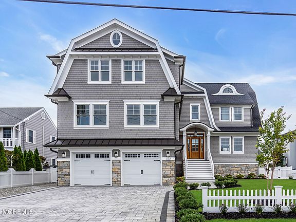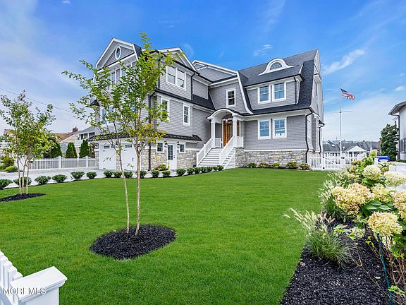 Curtis Point waterfront masterpiece by Charles Louis Custom Homes, offering the perfect fusion of timeless craftsmanship and high-end modern amenities. With 6 spacious bedrooms, 5.5 luxurious bathrooms (4 are en suites), and a 2-car garage, this residence is masterfully designed for elegant living and effortless entertaining indoors and out. Step inside to find stunning details throughout: extensive crown molding, base molding, wainscoting paired with 5'' white oak engineered hardwood floors and solid wood doors. The grand family room boasts a coffered ceiling, a gas fireplace with a custom mantel, and built-in LED-lit shelving. The heart of the home is the designer kitchen, complete with white oak cabinetry, a farmhouse sink, coffee bar, center island, quartz countertops, and a premium Viking appliance package that includes a 48" built-in refrigerator, 48" gas cooktop, dual wall ovens, wine cooler, and ice maker. An elevator provides access from the ground floor to the upper levels. The primary suite boasts a private balcony with water views, walk-in closet, and en suite with dual sinks and a shower stall. Enjoy two full laundry rooms, ceiling fans in all bedrooms, custom closet systems, and pre-wired speakers. The home is serviced by a 22KW Generac generator and two-zone HVAC system with smart thermostats. Enter up the grand stiars to the full attic. Outdoors, experience resort-style living with a 12'x30' custom gunite pool and 7'x7' jacuzzi. Relax by the gas fireplace in the covered outdoor "living room" with stone surround. The backyard oasis includes a new vinyl bulkhead with Trex decking, outdoor shower, and security cameras. Don't miss your chance to own one of the finest new construction homes on the Jersey Shore!