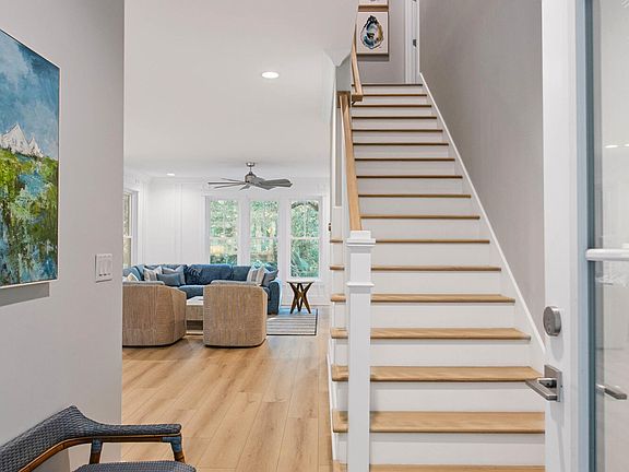 A welcoming front porch swing sets the tone for relaxed island living, while inside, the owners partnered with a professional interior designer to curate a fully furnished, turnkey retreat. The result is a warm yet polished aesthetic, where every room feels both beautiful and functional.