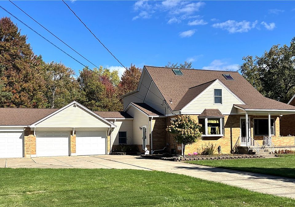 This well-kept Cape/Colonial home that blends timeless charm with functional living. The inviting brick and siding exterior, spacious front porch, and manicured lot sitting on an acre create great curb appeal.A standout feature of this property is the concrete driveway leading to a three-car garage, complete with an additional overhead door that opens to the backyard which is perfect for easy access, hobby projects, or extra storage for outdoor equipment.Inside, the home offers a warm and comfortable layout with generous main-floor living space, including a bright living room and formal dining area. The kitchen retains its classic design and cozy layout, offering a clean, well-maintained space that’s ready for your personal touches or future updates.Upstairs provides additional bedrooms or flexible space ideal for guests, a home office, or a creative retreat. Set on a deep lot with plenty of outdoor space for entertaining or gardening, this home delivers small-town charm and everyday practicality all in a convenient location near parks, schools, and local amenities. Offers due Wednesday October 15th at noon