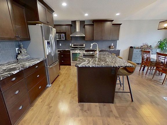 Discover your dream family home in this immaculate 3+1 bed, 3.5 bath gem. This home is perfect for growing families, blending style and function. The bright main floor features a kitchen with granite countertops, ample storage, and a walk-through pantry linked to a mudroom and oversized garage. Relax by the gas fireplace in the living room or use the flex room as an office or play area. Upstairs, the primary suite offers a walk-in closet and ensuite with a soaker tub, glass shower, and dual sinks. Two more bedrooms, a full bath, laundry, and a bonus room with surround sound complete this level. The finished basement includes a 4th bedroom, full bath, wet bar, wine room, and living area—ideal for entertaining. Enjoy a private, fenced backyard with no rear neighbors, a deck with speakers, and a gas BBQ hookup. Features: built-in speakers, central A/C, insulated interior walls, garage with in-floor heating roughed-in.