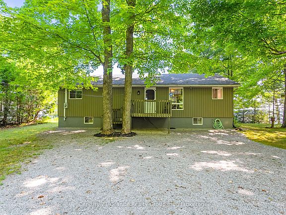 Morning light filters through the trees and glints off Head Lake as you sip your coffee on the deck. Its quiet. Just birdsong and the gentle lap of water against the shore. Set on a tree-lined lot with 100 feet of clean, east-facing shoreline, this 4-bedroom, 3-bath home offers year-round comfort and an easy rhythm of indoor-outdoor living. Inside, the open-concept layout makes the most of the view, with wall-to-wall windows and a cozy woodstove anchoring the main living space. The kitchen is generous and bright - perfect for casual meals, weekend guests, or feeding a full house after a day on the lake. The main-floor primary bedroom features direct access to the deck and a private 2-piece ensuite. Downstairs, the newly renovated lower level includes a large bedroom and wide-open space ready for games, guests, or whatever you need more room for. Steps lead from the house down to the dock, where you'll find deep, clear water and space to swim, paddle, or just float the afternoon away. There's also a 1.5-car garage, main-floor laundry, and thoughtful extras throughout, including most furnishings, a boat, paddle boat, and golf cart, all included in the sale. Under two hours from the GTA and fed by the untouched waters of QE II Wildlands Provincial Park, Head Lake is known for its clarity, calm, and quiet. And this is the kind of place where you can finally enjoy it.