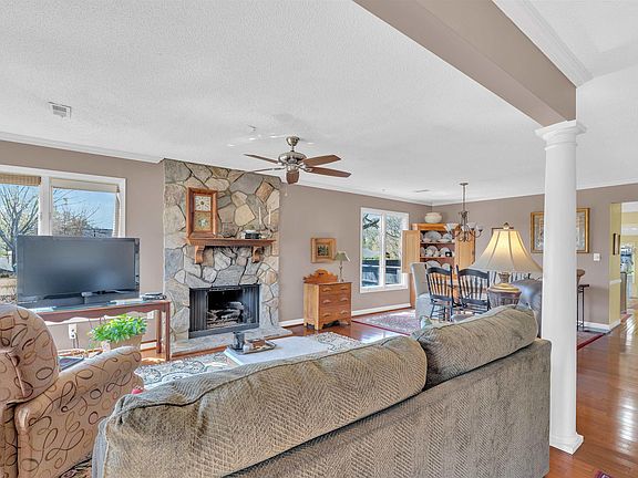 A rare opportunity for this Patio Home located in Sugar Creek Villas, which doesn't come along often. Prime corner lot with gentle grade with plenty of usable space. This home is 3 bedrooms and 2 full baths, all one level. Hardwood floors in main living areas, living room, dining room and kitchen. The living area is spacious and bright, with stone fireplace with gas logs. The kitchen size is generous with island and cabinet color a soothing mint green. An all-season sunroom with a skylight is located just off the kitchen and breakfast area. The primary bedroom is spacious and private, with large walk-in closet. The other two bedrooms border a small patio with water feature. Outdoor space includes a patio with pavers and enclosed storage building for garden equipment and tools. Privacy fence on side and rear of home. The community amenities include a pool, clubhouse and tennis courts. Great location with easy access to grocery shopping, restaurants, etc. Schedule your showing today.