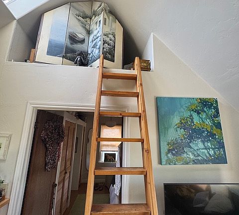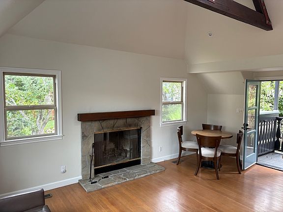 Adorable 1 bd 1 bath separate/stand-alone ADU unit with loft and skylights located in a quaint Kentfield neighborhood. Steps to the unit and very private. Approx 700 sq ft. with ample outdoor sitting area and porch. Private patio for entertaining. Close to Bon Air and 101. Private and treehouse-like setting. Parking, storage and washer dryer in unit. Optionally partially furnished. Kitchen table, chairs and leather sofa.