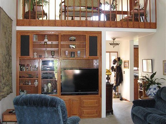 Beautifully appointed home with custom woodwork throughout. Soaring vaulted ceilings and abundant windows for lots of light and views. Loft-landing office or library. Roomy Master Suite with private balcony. Home has recently received a new roof. Terrific fenced outdoor living with gorgeous landscaping, in-ground sprinkler system, waterfall & pond water feature, fire pit, spacious partially covered wrap around decking, and lots of grass for pets or play. Great mountain & valley views during the day and city lights at night. Approximately 1/2 ac, of separate fenced yard or pasture area, lots of RV parking.