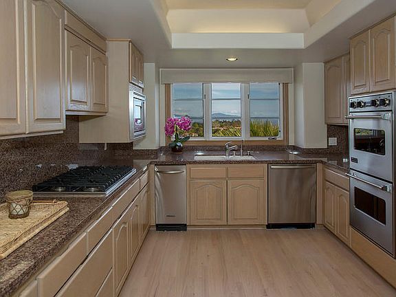Luxurious Townhouse with spectacular ocean and mountain views from Living Room, Dining Room, Gourmet Kitchen & Master BR. Two Bed Rooms, Two Baths upstairs plus a downstairs office/den (poss. third bedroom) and full Bath. Family Room, breakfast area, plus formal Dining Room, 3 Fireplaces, Central A/C, Central Vac, 2 Car Garage. Hilltop gated complex of only 11 units with beautiful pool and spa.
