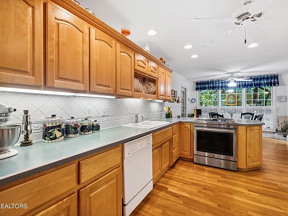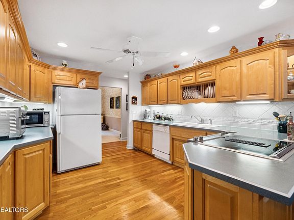 Welcome to 122 Vinita Lane, conveniently located in the desirable Tanasi Greens subdivision of Tellico Village. This beautifully maintained custom-built home offers 3 bedrooms and 2 bathrooms, along with a rare 3-car side-entry garage. Step into the inviting great room featuring high cathedral ceilings and a cozy gas fireplace, perfect for relaxing evenings. Six large windows and doors all with transom windows above allow natural light to flood the space and offer wonderful views of the wooded common area behind the home. Dining area options include the dining room at the front of the house with large windows and high tray ceiling; the eat-in kitchen overlooking the backyard; or the screened-in back porch right off the kitchen. The master bedroom is a peaceful retreat, complete with a tray ceiling, en suite bathroom, jetted tub, and walk-in shower.