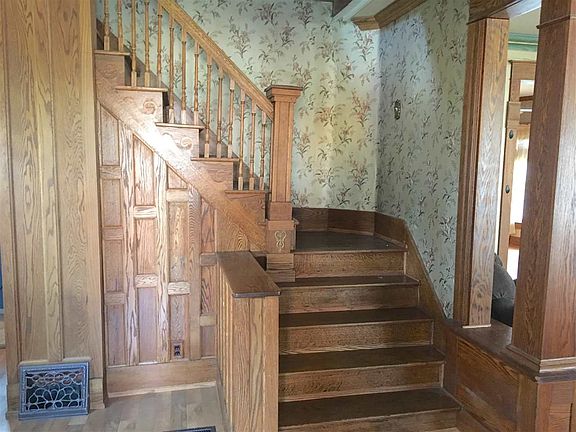 Wonderful family home with 4 bedrooms, 2 baths, large fenced in yard complete with an oversized 2 car garage. The impressive hand crafted woodwork and crown moulding gives this home SO much charming character. Beautiful hardwood floors compliment the open layout main level. Enjoy relaxing on the covered front porch or entertaining on the back patio. Gas furnace updated. Taxes reflect no homestead exemption. Would be approximately $596.00 annually with the Homestead Exemption applied.
