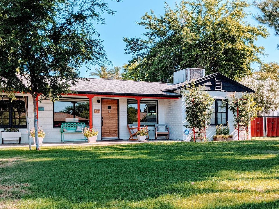 Urban convenience in this modern yet historic ranch home in the heart of midtown Phoenix. This 2 bedroom, 1 bathroom house plus den is nestled on a spacious irrigated lot, the lush grass and curb appeal beg you to step inside. Beautifully updated with every detail and finish to the nines. Hand-scraped acacia wood floors flow throughout the home and endless charm. Spectacular backyard with lush grass area, sparkling pool, outdoor kitchen and expansive covered patio space. Just one block from Central Ave and the light rail and a short walk to many of the Valley's hottest restaurants, the location is arguably unbeatable. I, addition to the rent of $2,800 the is also an additional $380 monthly charge for pool and landscaping maintenance. Don't miss out on this rare gem!