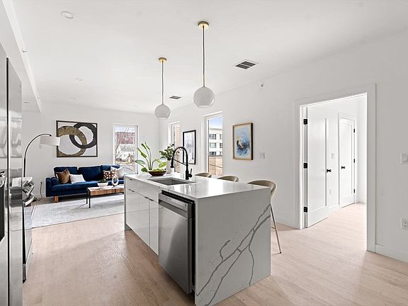 The Bradley is Weymouth Landing's newest offering! A perfect blend of scale and sophistication. Consistent modern design and top-notch amenities put this new development in a class of its own; this top floor corner unit 2 bed + den/office layout offers incredible space and functionality. This condo features an open-concept living area with large windows that flood with natural light. The kitchen features European-style flat cabinets with stainless steel appliances. Two generous bedrooms, a bonus office/den and exclusive deck space off the living area make this unit a must see! This elevator building offers garage parking and multiple common amenities including a gym, common roof deck and a large courtyard. Located in red hot Weymouth Landing which features multiple restaurants and shops. It is a short distance to the commuter rail and well positioned to major highways. A truly one-of-a-kind offering that will not last!