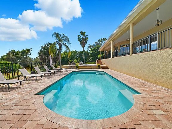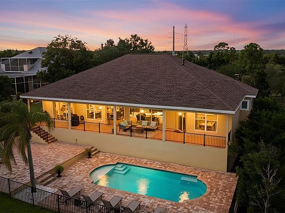 Enjoy breathtaking, unobstructed views of Lake Tarpon from this large custom home, perfectly positioned on one of the most elevated lots in the area. This stunning home 4 bedroom + den, 4 bathroom, 4,200sqft home sits directly behind a protected gopher tortoise reserve, ensuring that nothing will ever be built behind you — your serene water views are forever preserved. Nestled in Waterberry, an intimate, highly sought-after community of only 14 homes on Lake Tarpon, this is one of only a handful of homes that have ever come to market, with only one sale in the past two years. Homes here rarely change hands, making this a rare opportunity to own in one of Tarpon Springs’ most exclusive neighborhoods. Built on a massive hill, high above the floodplain and well beyond Flood Zone X, this home is completely high and dry — it sustained absolutely no storm damage and requires no flood insurance. Inside, you find plenty of space for the entire family with all four bedrooms featuring ensuite bathrooms! On the main level, you’ll immediately notice the stunning hardwood floors, open-concept layout, high coffered ceilings and water views from nearly every room. The primary suite and main level showcase real hardwood floors, tray ceilings, and elegant finishes throughout. The living room features a beautiful fireplace, crown moldings, and fantastic views of Lake Tarpon. Just off the living room is the kitchen, complete with wood cabinetry, granite countertops, newer stainless steel KitchenAid appliances, and a spacious eat-in area perfect for breakfast. The formal dining room off the kitchen is ideal for larger gatherings and celebrations. On the opposite side of the living room, French doors open to a versatile den, perfect for a home office with its own private balcony. The lower level (or basement) has been fully permitted and thoughtfully finished to include over 1,300sqft of living space, including a private 4th bedroom or in-law suite, a game room, plus plumbing for a wet bar or kitchen — ideal for guests, multi-generational living, or entertaining. You’ll also find a dedicated wine cellar for your collection. Relax in style on your large covered porch overlooking the pool and lake. Step outside to your private paradise and enjoy a resort-style saltwater pool with water features, firepit, and a raised patio perfect for nighttime entertaining — all while taking in tranquil water views of Lake Tarpon from the pool deck. The 0.28-acre (12,589 sq ft) lot offers generous outdoor space and an oversized 4-car garage with plenty of room for a boat or extra storage. Recent upgrades provide complete peace of mind and modern comfort, including a new roof (2022), a new central HVAC system (2022), with a new mini-split for the lower level added in 2023, and remodeled primary bathroom and remodeled guest bathrooms (2023). This home features a new hot-water heater (2022), electronic and manual roller shades throughout (2022), and a newer Maytag washer and dryer (2020). A propane tank added in 2021 provides convenient gas service with easy, once-a-year fill-ups. Aggressively priced below comparable homes, this Lake Tarpon gem combines serenity, luxury updates, and unmatched elevation — all with no flood insurance required, low HOA costs, and no CDD fees.
