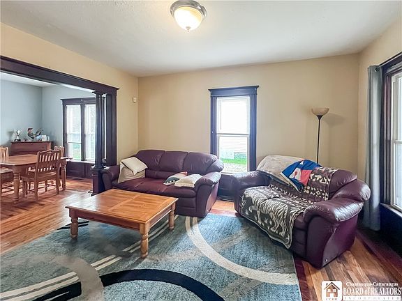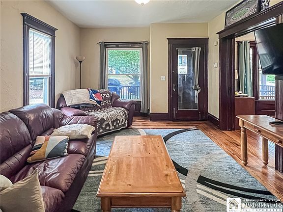 Welcome to this charming four-bedroom, two-bath home on Jamestown’s Northside! You’ll love relaxing on the inviting covered front porch or entertaining on the spacious back deck. Inside, the home features beautiful updates throughout, including a new kitchen and gorgeous hardwood floors that highlight the home’s character and natural woodwork. The first-floor bedroom adds convenience and flexibility, while newer windows bring in plenty of natural light. The attic offers the potential to be finished for additional living space or used as excellent storage. A perfect blend of classic charm and modern updates—ready for you to move right in!