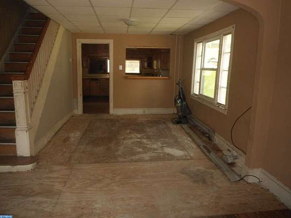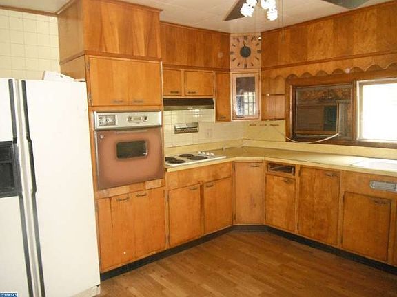 End of row with spacious kitchen. Possible off street parking on side of the house. Make an offer.