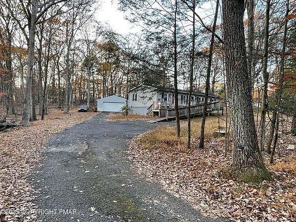 Discover this charming 3-bedroom, 2-bath ranch home nestled on private acreage, perfect for anyone seeking peace, privacy, and seclusion while still staying close to everything the Poconos has to offer. Ideally located near Camelback, Kalahari, and The Crossings for year-round recreation and shopping, and just minutes to major routes and local hospitals for added convenience. This home features a detached two-car garage?great for storage, a workshop, or the car enthusiast. Inside, you'll find a comfortable layout and the ease of a fully equipped kitchen, plus washer and dryer included, making this home move-in ready. Enjoy the best of both worlds: serene, private living with unbeatable accessibility.