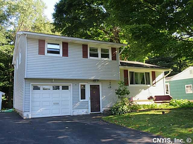 Welcome to this wonderful split level home in convenient Liverpool location. Bright kitchen features Corian countertops, large pantry, and eat-in area. Huge family room with fireplace, lots of natural light, dining area, and easy access to half bath. Spacious living room with stairs to upper level boasting 3 bedrooms with hardwood floors and full bath. Grand foyer entry way leads to additional den/office area and access to basement and garage. Beautiful Stampcrete patio off the deck overlooking large treed yard. Updates include Comfort windows, furnace, central air and so much more!