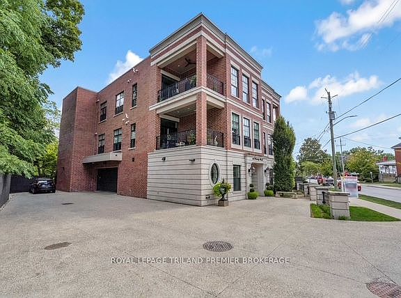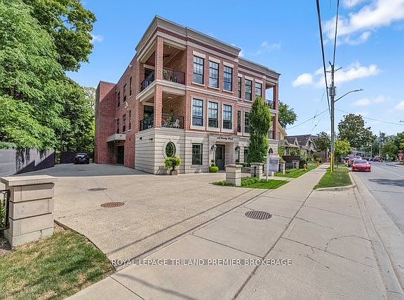 Welcome to PARKS EDGE, featuring only 7 suites in one of London's most desirable areas. Surrounded by majestic trees and beautifully landscaped grounds, complete with a pool and waterfall, this location is just minutes from downtown and mere steps from everything Wortley Village has to offer. Finished in the fall of 2017, Suite 202 boasts 1,332 square feet of interior space, along with an 8x15 southwest-facing covered terrace that overlooks the village. This terrace includes a hose bib, power, and gas hookup. This two-bedroom, two-bath suite exemplifies unparalleled quality, featuring 10-foot ceilings, oversized windows, a gas fireplace, and top-tier fixtures and finishes. Other notable attributes include custom GCW granite in the kitchen and bathrooms, high-end appliances, wide plank white oak flooring, in-floor radiant heating, solid core doors, extensive millwork, and automated blinds with blackout options in both bedrooms. Enjoy virtually no sound transfer between units, along with a Sonos sound system in the great room, kitchen, and primary bedroom. The Lutron lighting system throughout, including motion-activated features, adds significant value. The suite also offers extensive built-ins in all closets and a heated garage. A guest suite located just off the lobby is available for overnight visitors. The Common Element Fee covers building insurance, maintenance, common areas, door upkeep, landscaping, heating, private garbage removal, property management fees, roofing, snow removal, water, and windows. PET FRIENDLY BUILDING. This could be your next home sweet home!