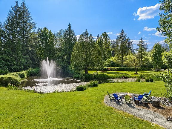 The Ultimate home to unwind & melt away the stress of the day in an area of luxury estates on acreage. A Private Rd to the entrance, be prepared to be soothed & impressed. A Beautifully updated CapeCod-style home greets you at the rear edge of a stunning 2.3 acres. Home sited to take full advantage of expansive westerly views across rolling lawns, manicured gardens, raised beds, fruit trees, fire pit gathering areas & an Anchoring Serene Pond Adorned by a Grand Water Feature. New Lux Baths, Re-Pipe of home, Newer Furnace, etc., all updates add to the Great Rm Flr plan, 3bd 2.25bths+Den+Huge Extr Fin Rm off 2 car Det Garage. Work from home or Entertain, this home is perfection. An Expansive Deck & Covered heated Patio are waiting for you.