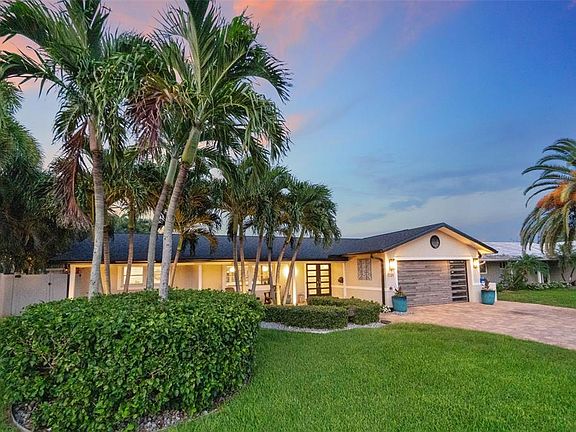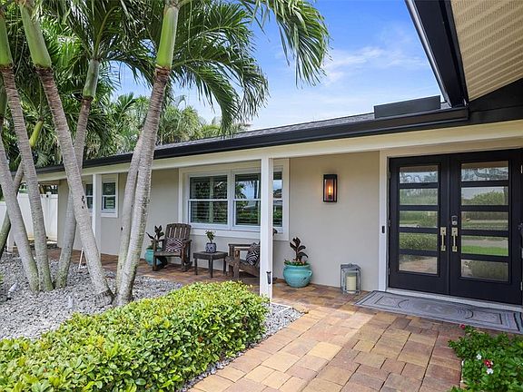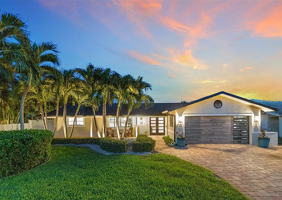 Welcome in! One of the most important things to know about this home in the highly-desirable Yacht Club Estates neighborhood is that this elevated lot DID NOT TAKE ON ANY WATER during last year’s hurricane; a tremendous peace of mind for waterfront living. As you approach the home, you’ll notice the updated exterior with new hurricane-rated front door and garage door, as well as, a brand-new roof, gutters & facia. Inside, the first thing you’ll notice is the fully-remodeled gorgeous gourmet kitchen equipped with modern Thermador and Bosch appliances. The kitchen also features premium finishes with solid wood cabinetry, quartz countertops, and a layout that flows seamlessly into the main living area. This home offers over 2,200 square feet of space with 3 bedrooms and 2 bathrooms, plus the convenience of a 2-car garage with washer/dryer hook-up access. In this home you’ll find an oversized, walk-in pantry with an additional W/D hook-up for indoor convenience. The second bedroom includes two built-in Murphy beds, making it perfect for visitors or flexible living. The primary suite is a true gem. Not only does it capture peaceful water views, but it also features an absolutely amazing California Closet custom-designed dressing room boasting exceptional storage, a vanity/makeup station and organization that is sure to impress. Step out back to the travertine-paved patio with a custom, built-in outdoor kitchen and a backyard overlooking Boca Ciega Bay, perfect for gatherings or quiet evenings. For boaters, the property is perfectly located in a protected area that includes a private dock with a 13,000 lb boat lift, making water access effortless. Overall, it’s a rare combination with peace of mind, high-end finishes, and true luxury waterfront living. Listed $25,000 under appraised value (9/25), come and see your new home.