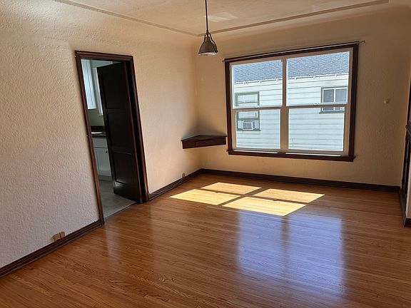 Beautiful 1930's Classic Spanish building! 2 bedroom 1 bath upper unit with formal dining room, breakfast nook and newly refinished hardwood floors. Granite countertops, newer appliances. Lots of built-in cabinets. Coved ceilings, mock fireplace with mantle. Bathroom & kitchen totally updated. 3 small walk-in closets. Laundry room on site. Garage included. Owner pays for water & sewer, gardening and monthly pest control service. No smoking inside unit. Garage is available for storage. Shared parking.
