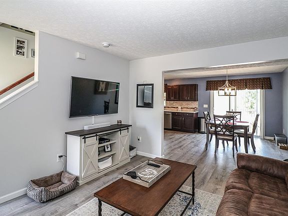 Situated on a huge fenced lot on a cul de sac street this home has lots of nice upgrades. Beautiful hard floors throughout the first floor, kitchen quartz countertop and tile backsplash, updated double vanity in the master bath, and fencing were all recently added. The lower level has a nice finished family room, plenty of storage and a walkout.