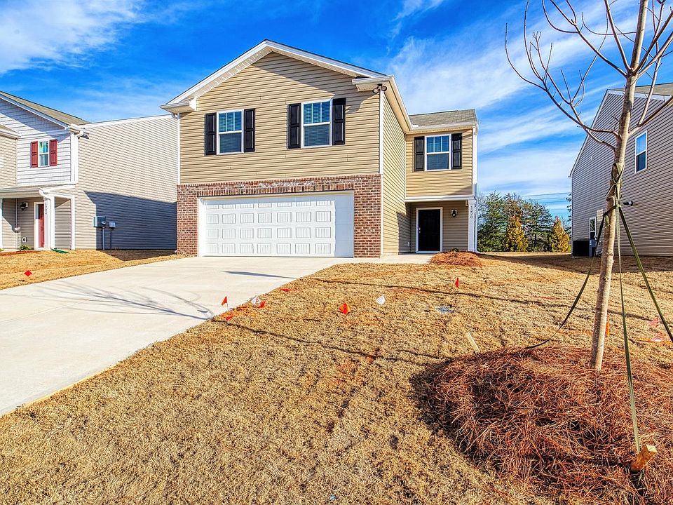 MOVE IN READY ! The Aisle floor plan with BRICK front is 4 bedroom 2.5 bathrooms plus a LOFT. The open floor plan is perfect for entertaining, featuring granite counter tops, abundant counter space, a HUGE walk in air conditioned panty. Whirlpool stainless steel appliances with a 5 burner gas range, shaker style cabinets with handles and even crown molding ! Don’t forget the gas log fireplace in the Living area for those chilly nights. You will find a large guest powder room on the first floor. Your second level has a spacious loft and plenty of storage throughout, 2nd bathroom has raised vanity, dual under mount sinks and a beautiful venetian marble top , tub and shower combination. Your huge Landry room is also on the same level did I mention its air conditioned. The best for last !!! The Owners Suite will easily accommodate a king size bed with a walk in closet that is unheard of at this price point ! Owners bath has an oversize shower with framed glass enclosure, private water closet, raised vanity dual under mount sinks and a beautiful venetian marble top and a bonus a linen closet. The Smart Home package is included with no monthly fee, even a video doorbell. BRAND NEW HOME with WARRANTIES FROM THE LARGEST BUILDER IN THE USA! Including Hawaii.