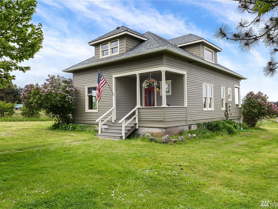 Circa 1916 farmhouse- 3 bdrm, 2.75 bth on San Juan Island. Upper level has studio with separate entrance. 5 acres +/- level and sunny acres, and large pond. Irrigated garden. Partly restored, new roof, paint, 2 drilled wells, reclaimed hardwood flooring. Roadside barn/shop is perfect location for farm stand. Fiber optic installed into home. Perfect mini farm, homestead or rental investment.