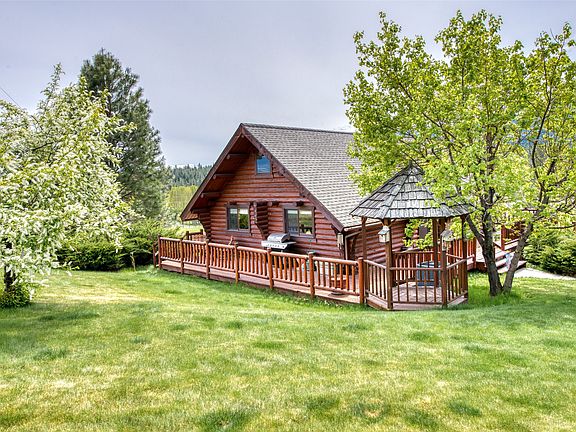 Delightful Montana log cabin in the country. Centrally located on the west side of the valley this view will knock your socks off! Enjoy the Bitterroot mountain views from this private setting situated on over 6 acres with scattered pines, irrigation rights, a big covered porch and a shop. Classic log cabin style with 2 bedrooms, living, kitchen, dining, bath on main level. Upstairs loft is super cozy accessed by a beautiful stairway and overlooks the main living area with plenty of light. Basement includes a comfortable family room with a wet bar and big windows with excellent mountain views. 2nd bath on lower level plus furnace room, utility room and storage. Wrap around deck, plus a gazebo looking at the Sapphires. Fenced yard for your pets, and air conditioned comfort for warm summer days. Oversized metal shop is heated for your vehicle storage and year round projects. Well maintained home first time offered, all set up for year round living, near the end of the road, you won't want to miss seeing this home.