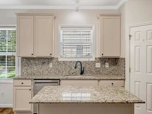 This charming 3-bedroom, 2-bath ranch-style home sits on a private lot along a cul-de-sac street, offering both comfort and privacy. A covered front porch welcomes you inside to a spacious living area with soaring ceilings and a cozy gas-log fireplace, along with an attached 1-car garage and concrete driveway. The kitchen is beautifully updated with granite kitchen counters, stainless steel appliances, a large island, painted cabinetry, a generous pantry, and an eat-in area—perfect for gatherings. The owner's suite features a walk-in closet, while the secondary bath also includes a granite countertop and updated finishes. Recent improvements within the last 3 years include LVP flooring in the main living areas, granite updates, and refreshed cabinetry. Bedrooms offer plush carpet for added comfort. Outdoor living includes a large deck (recently re-decked) with an attached screened and covered porch, ideal for year-round enjoyment. A wired storage shed (12X20) conveys, and the backyard offers added privacy as it backs to HOA land. With maintenance-free vinyl siding, natural gas heat, a roof less than 3 years old and thoughtful updates throughout, this home is move-in ready and full of charm.