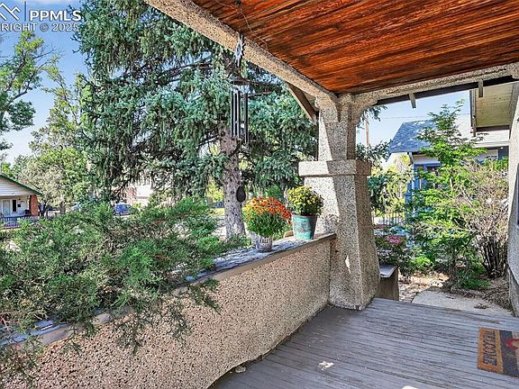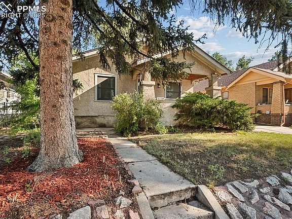 If you are looking for modern conveniences and 1920's charm, you have found it! Welcome to this delightful 2-bedroom, 1-bath residence nestled on a generous lot with a fully fenced backyard—ideal for pets, play, or gardening. New windows and original hardwood flooring create a quiet, warm and welcoming atmosphere throughout. Enjoy relaxing mornings on the covered front porch or entertain in the spacious living room and formal dining area, complete with a built-in sideboard buffet. The kitchen features included appliances, a newer single-basin sink, ample cabinetry, wainscoting, and a built-in cabinet for extra storage and character. Both main-level bedrooms are connected by an updated and charming Jack and Jill full bath, featuring wainscoting and a classic medicine cabinet. A rear entry leads to a convenient mudroom/laundry room, perfect for keeping things tidy. The oversized 1-car detached garage includes an overhead opener and offers plenty of space for a workshop or additional storage. With a low-maintenance stucco exterior and updated electrical, this home is move-in ready. Located within walk distance of Memorial Hospital and the Olympic Training center and just minutes from Downtown Colorado Springs, Colorado College, schools, parks and trails—this property offers both comfort and convenience. Don't miss your chance to see this property with some newer Andersen windows, newer water main and updated electrical.