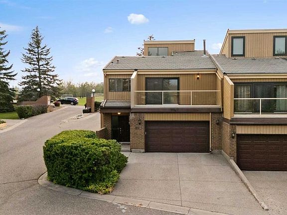 Unparalleled corner - Price improved - This stunning, SUN-FILLED executive townhome offers OVER 2,800 sq. ft. of exquisitely renovated and redesigned living space, combining modern elegance with functional comfort in one of Calgary’s most desirable communities. Perfectly situated in front of Prominence Park, this home is a hidden gem that blends privacy, style, and convenience. Step inside and be welcomed by soaring ceilings, skylights, and an open-concept main floor that flows seamlessly between the chef-inspired kitchen, dining, and living spaces. The gourmet kitchen features a custom double-tone design, quartz countertops, ceiling-height cabinetry, a generous island and premium stainless-steel appliances. The inviting living room is anchored by a cozy wood-burning fireplace and large west-facing windows, opening to an expansive balcony with serene park views—ideal for entertaining or relaxing. The unique 4-level split layout provides privacy and versatility. Each of the two spacious bedrooms is set on its own level, both with private balconies, walk-in closets, and spa-inspired ensuites. The primary retreat is a true sanctuary with vaulted ceilings, dual vanities, a soaker tub, and a frameless shower. A skylit staircase and open-riser glass-accented stairs ensure the entire home is filled with natural light. The lower level offers even more living space, featuring a family/media room with a second fireplace, a bonus flex room perfect for a home office or gym, and a stylish bar area for entertaining. The attached double garage adds convenience, while the beautifully landscaped internal gardens create a private and secure setting. Additional upgrades include kitchen, all new appliances, quartz counters throughout (2025), seven replaced skylights (2019), updated Lux windows and doors (2018), modern flooring, and fresh ceilings (2025). Every detail of this renovation was thoughtfully curated with high-end finishes for a timeless and sophisticated look. Located in the exclusive Prominence Estates, this boutique enclave of only 20 residences offers tranquility, mature landscaping, and visitor parking. Enjoy unbeatable access to walking trails, golf, shopping, dining, top-rated schools, Westside Recreation Centre, LRT, and just a short 15-minute drive downtown. Weekend getaways are effortless with the mountains only an hour away. This beautifully renovated corner townhome is just a short stroll to Patterson Park. With its executive 4-level split design, this home perfectly accommodates families at any stage of life. Step inside and be captivated! The renowned schools closest to the Patterson community in Calgary include the public high schools Sir Winston Churchill High School and Ernest Manning High School, and for private options, Webber Academy and Rundle College. Close to home walk or bike to Edworthy Park. This is not just a home—it’s a lifestyle. Grab this rare opportunity to own a one-of-a-kind townhome fully renovated. Enjoy Full 3D Tour!.
