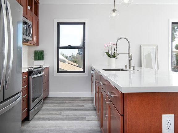 Brand new, boutique multifamily apartment building of 15 large penthouses with a master suite, dedicated office room, powder room, huge great room (kitchen living room combo), Rooftop sundeck with breathtaking view, and 24/7 security. The building is located 200 ft from downtown Burlingame Avenue and 1 mile from Burlingame Avenue, 3 minutes from 101 and 8 minutes from SFO. Key Features and Amenities 860 sq-ft with 9'-5" height ceiling Luxury style color and scheme palette of Chantilly lace white, chic grey, maple cognac cabinet, white-grey countertop and flooring, and stainless-steel hardware Huge master suite with exotic master bathroom and His and Her custom closets with built-in dressers Dedicated den space with a beautiful outdoor view Master bathroom spa with high-end quartz shower wall slab, rainfall shower head, high-end acacia vanity and Bluetooth speaker with built-in Alexa Wi-Fi enabled, front load LG washer and dryer Very large great room - kitchen/living room combo Custom maple cognac kitchen cabinet with a 10 ft. island 32" single bowl undermount stainless steel sink with Kohler industrial looking pull-down kitchen faucet Luxurious white and grey quartz countertop and backsplash Whirlpool stainless steel kitchen appliances Luxury Schlage stainless steel door hardware, stainless steel kitchen cabinet pulls and satin nickel rods Beautiful wood flooring throughout Tech-forward amenities controlled by a smartphone Keyless entry to each apartment, lobby, and garage, deck Nest for centralized AC and heating Halo wireless smart recessed lighting (on/off, dimming, color temperature, grouping and scheduling), Bluetooth speaker with built-in Alexa in the bathroom. Ring video doorbell USB outlets throughout Garage door opener 1Gbps dedicated fiber internet connection per penthouse 500 sq-ft rooftop sundeck with BBQ, outdoor furniture Pet friendly Smoke free building (indoor and outdoor) Cloud based 24/7 security throughout all common areas EV stations in the parking garage Secure bike storage and extra storage facility per tenant Sustainable penthouses designed around ecology and wellness Dog washing station 12-month lease. tenants pay utilities Pet friendly. Pet monthly fee $89. No additional security deposit Parking monthly fee - $150