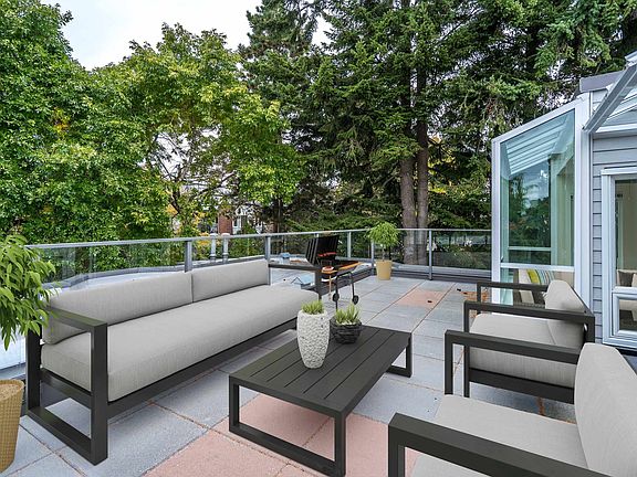 Vista Pacifica - RARE TOP FLOOR PENTHOUSE CORNER UNIT... this one is not to be missed! Featuring 2 beds and 2 baths PLUS a SOLARIUM with large updated windows overlooking your private view. Gas fireplace and hardwood floors and a fantastic layout give this home warmth, charm and functionality. Exceptionally bright 1168 sf home featuring 1 rooftop deck and 1 balcony (451sf!) that make it feel like your in your own cozy backyard. Strata fees cover gas and hot water. Building is fully rain-screened and has a proactive and well run strata. One cat or one service dog. Located steps away from gorgeous ocean views, Laura's Coffee, boutique shops, churches, doctor's offices and transportation. Freshly repainted and move-in ready. If you like privacy and quiet, this is the one for you!
