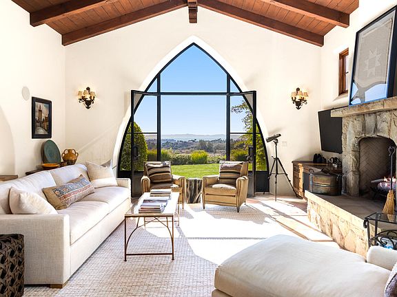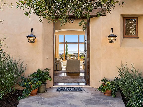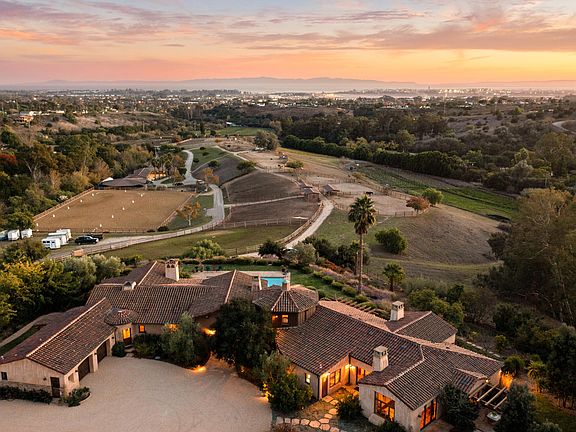 Gracious, serene, and soulful – this high-end residence and 22-acre ranch (zoned AG-1-5) offers panoramic views of the ocean, islands, & mountains. The custom-designed Mediterranean estate was conceived by Mark Shields for single-level CA living and expands across over 6,000 sq ft. A winning combination of scale, substance & privacy, the home enjoys 3 bd, 5 ba, with 4th bed/office, library & high-end amenities. Ample room to add a guest house, tennis court, or vineyards & create the ideal ocean view estate property. There is a fully appointed 6-horse barn that includes an apartment, tack room, & feed room. 12 sheltered pastures, 9 covered paddocks, covered round pen, riding arena, & a jump course. An organic farm completes this majestic property!