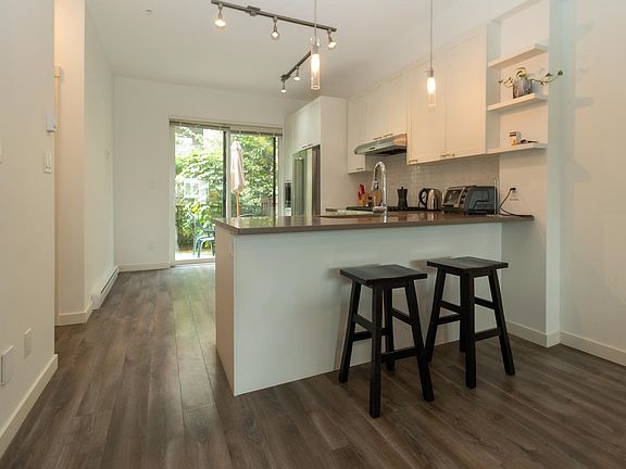 Welcome to the thoughtfully planned complex of Eaglewind. This spectacular TH has a bright and open floor plan and views of Mount Garibaldi, with many extras including a gas fireplace and bbq hookups and powder room on the main floor. The extended kitchen features polished quartz countertops, stainless steel appliances, a gas range, patio doors that lead out to a private backyard space which is fully fenced. Upstairs you have 9ft ceilings, the Primary bedroom with his and hers closets and an ensuite, while the additional bedrooms share a designated full bath and laundry. This unit’s tandem garage has enough room for two vehicles and your toys! Centrally located in the heart of downtown Squamish, this complex is close to shopping, schools and restaurants OPEN HOUSE SAT SEPT 20, 11AM -1PM