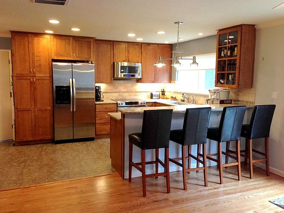 Two car garage parkingBreakfast barCorner lotCustom sandy tile backsplashOpen floor planStainless steel appliancesRecessed lighting